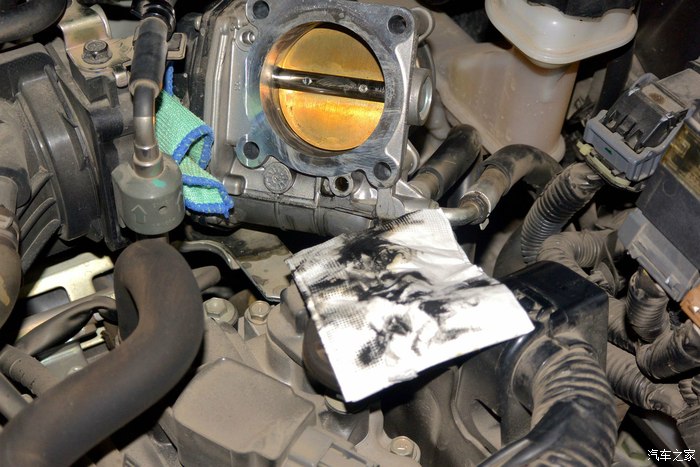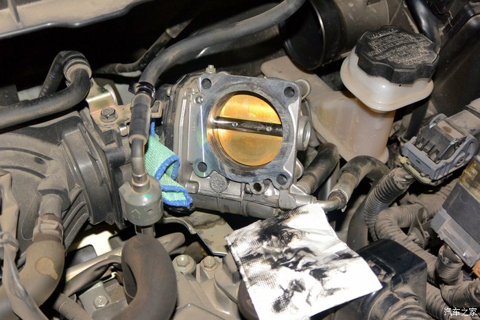 节气门清洗后,机器运转平稳了,怠速也很稳定。本人心情也舒畅了。