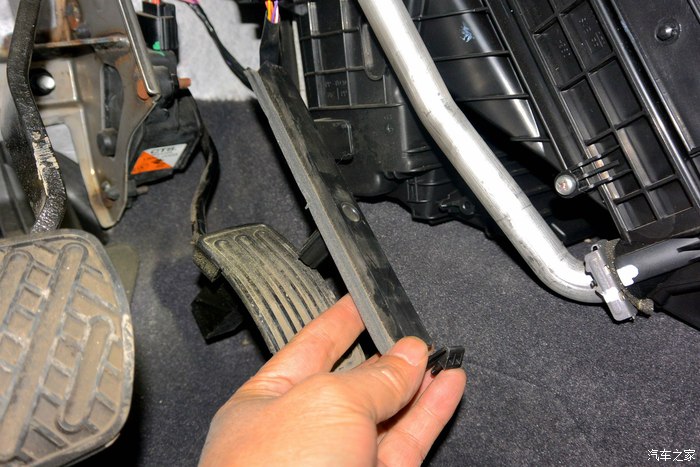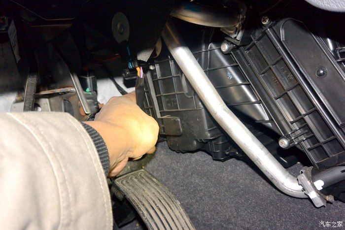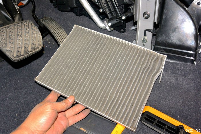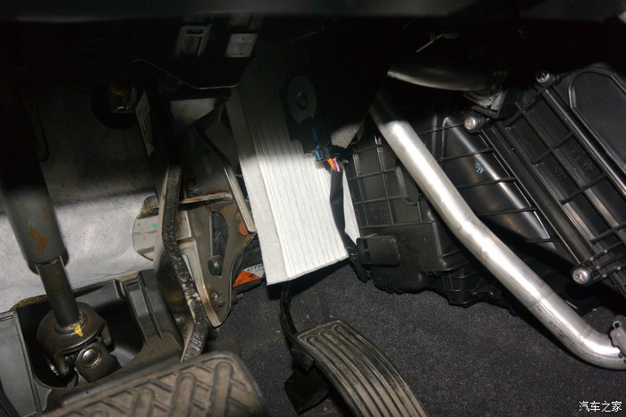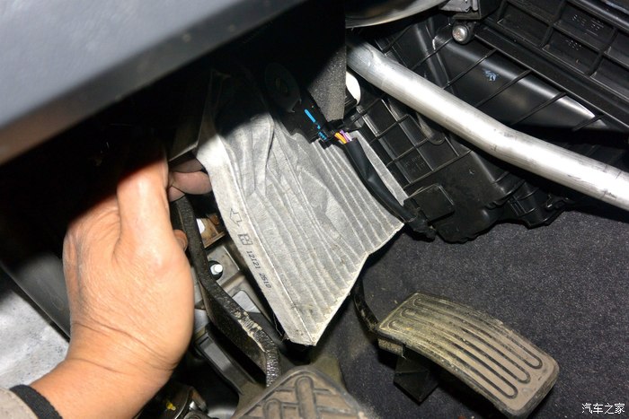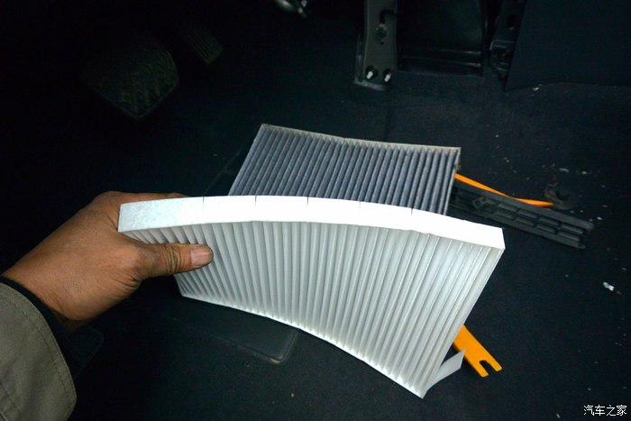 接下来再换个空调滤芯,这个很方便换,不用板手及起子之类的工具,基本上就一只左手就成了,也拍了几张照片,供分享。