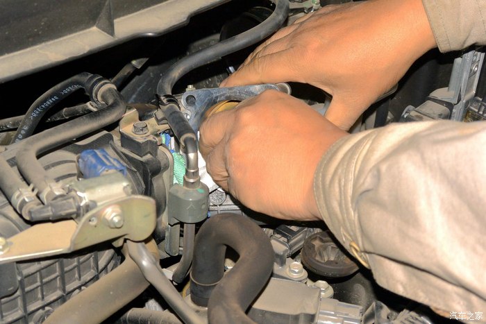 把空气连接软管拆下,要先松螺丝箍
