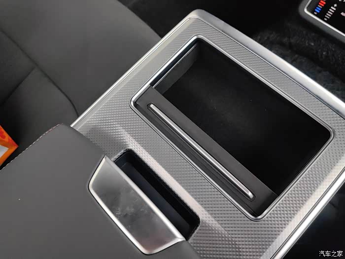 水杯架位置合理,拿去方便,中央扶手区打开,也是有很大的储物空间,中央扶手可自由调节高低及前后距离