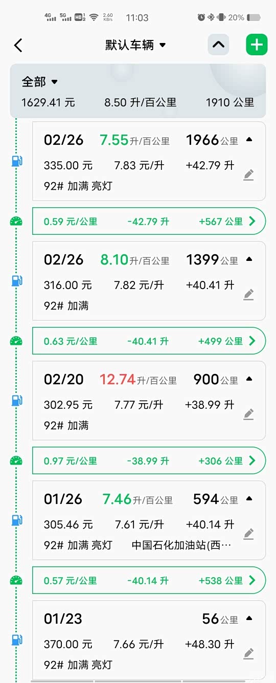昨天一天开的油耗,因为辅助驾驶越用越舒服,越开越快,导致油耗越来越高,表显120km/h是2100转,表显125km/h是2200转,表显115km/h是2000转,表显110km/h是1900转,看到这里,聪明的你一定看出来每差5km/h的时速转速会差100转了,从我的油耗上大概也能看出来,速度慢点油耗会低点,我昨天是一人一狗,后备箱拉满开的,我出差油费过路费都能报销,所以也没有刻意让发动机保持1900转行驶。