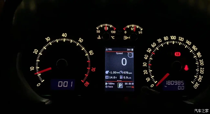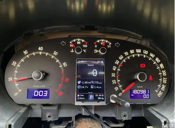 这次的改装可以说是一次拔草之旅:我自己车上目前在用的仪表是一块改装了GTI红表针和自制260码表底表纸的842大红屏多功能仪表,按说在老Polo 9N&9J平台上,84X系列大红屏已经算是顶级的存在了,也确实嘚瑟了好一阵子,直到遇到了本帖的主角——一块多功能全彩液晶仪表。