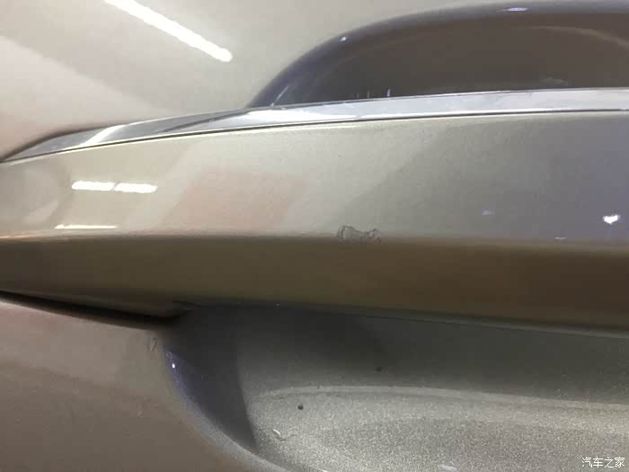 提车之后发现主驾驶的门把手发现了一处伤,4S果真不承认,只能等以后找个会补漆了,不过还好只是小伤,所以大家验车的时候一定要细心细心再细心,车只要出了4S店,有什么问题都不会承认。