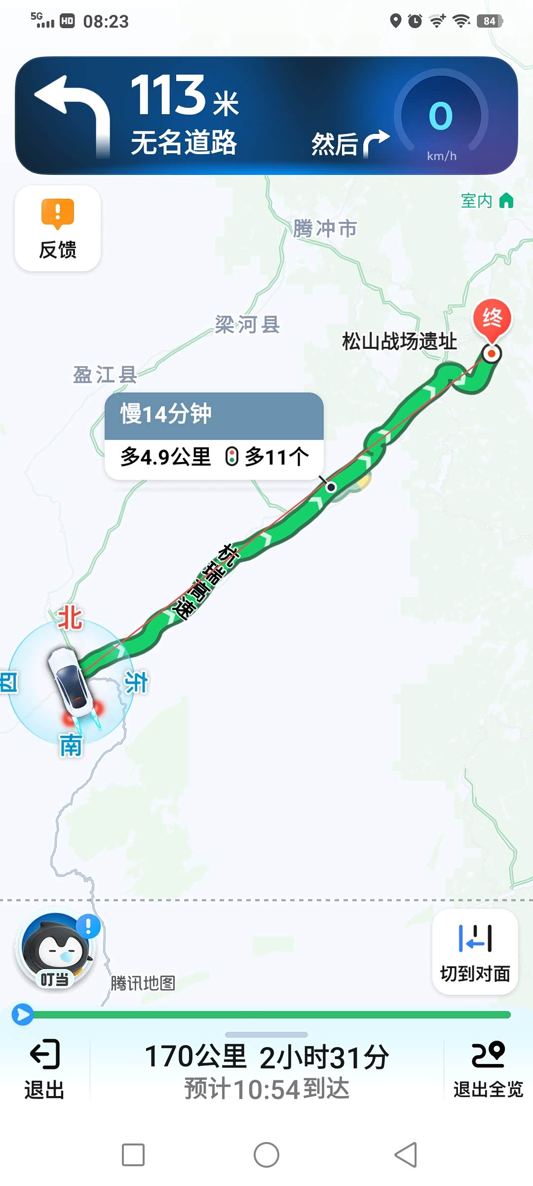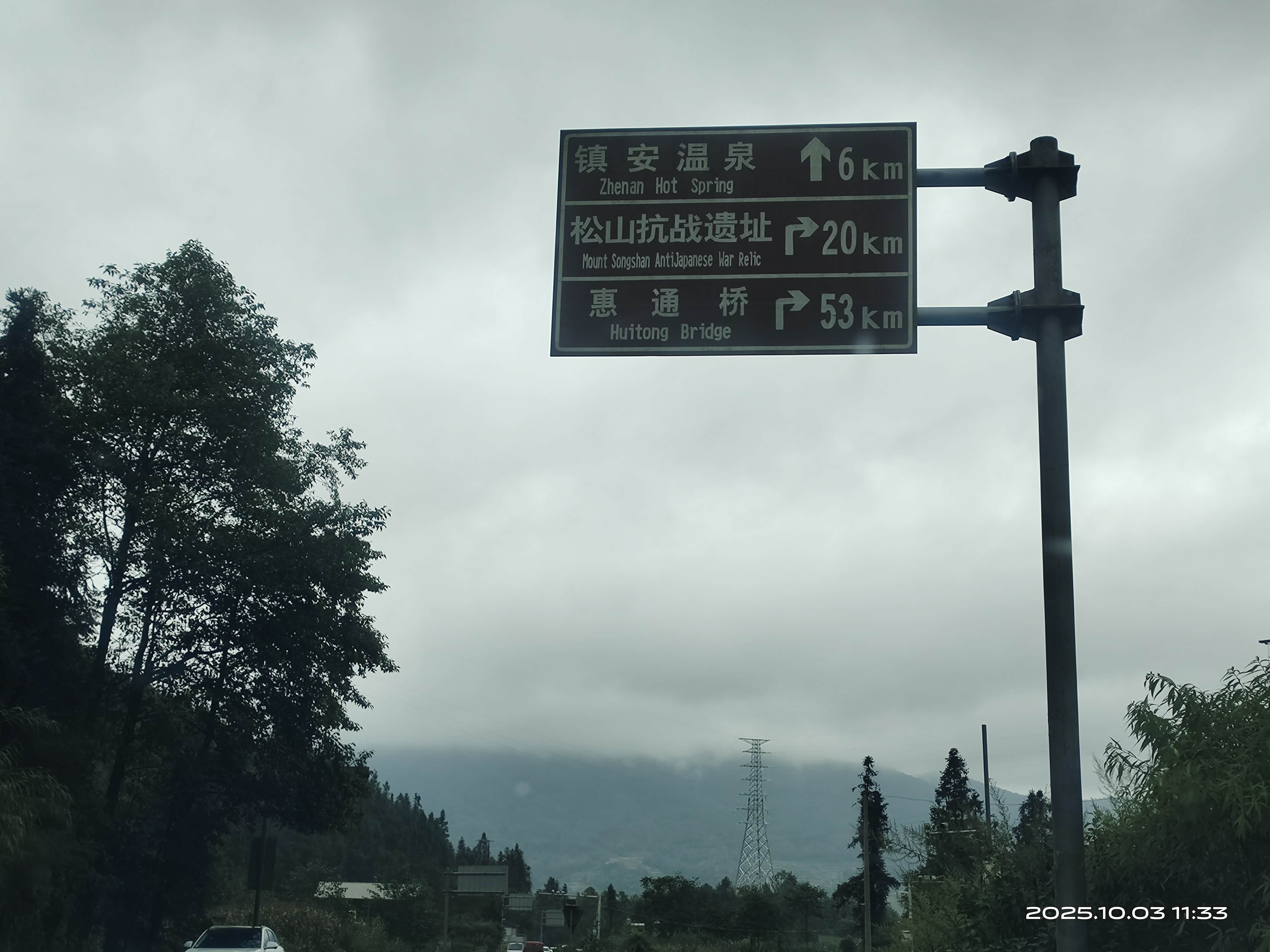 从瑞丽出发,到达目的地松山抗战遗址导航地图显示170公里,国庆假期高速免费,所以从瑞丽就上高速从龙岭下高速,下了高速还要走国道差不多40公里,单程时间需要两个半小时。