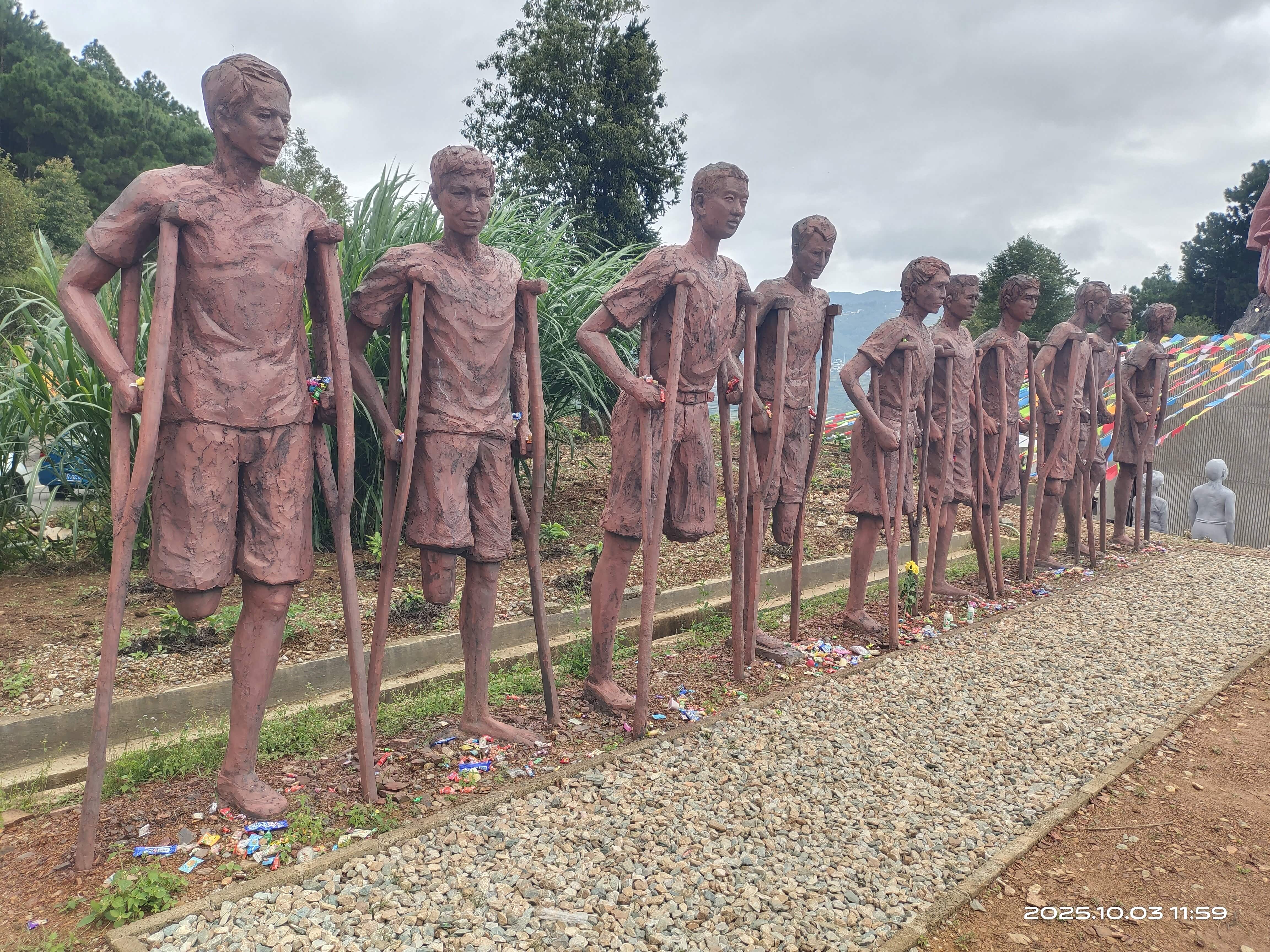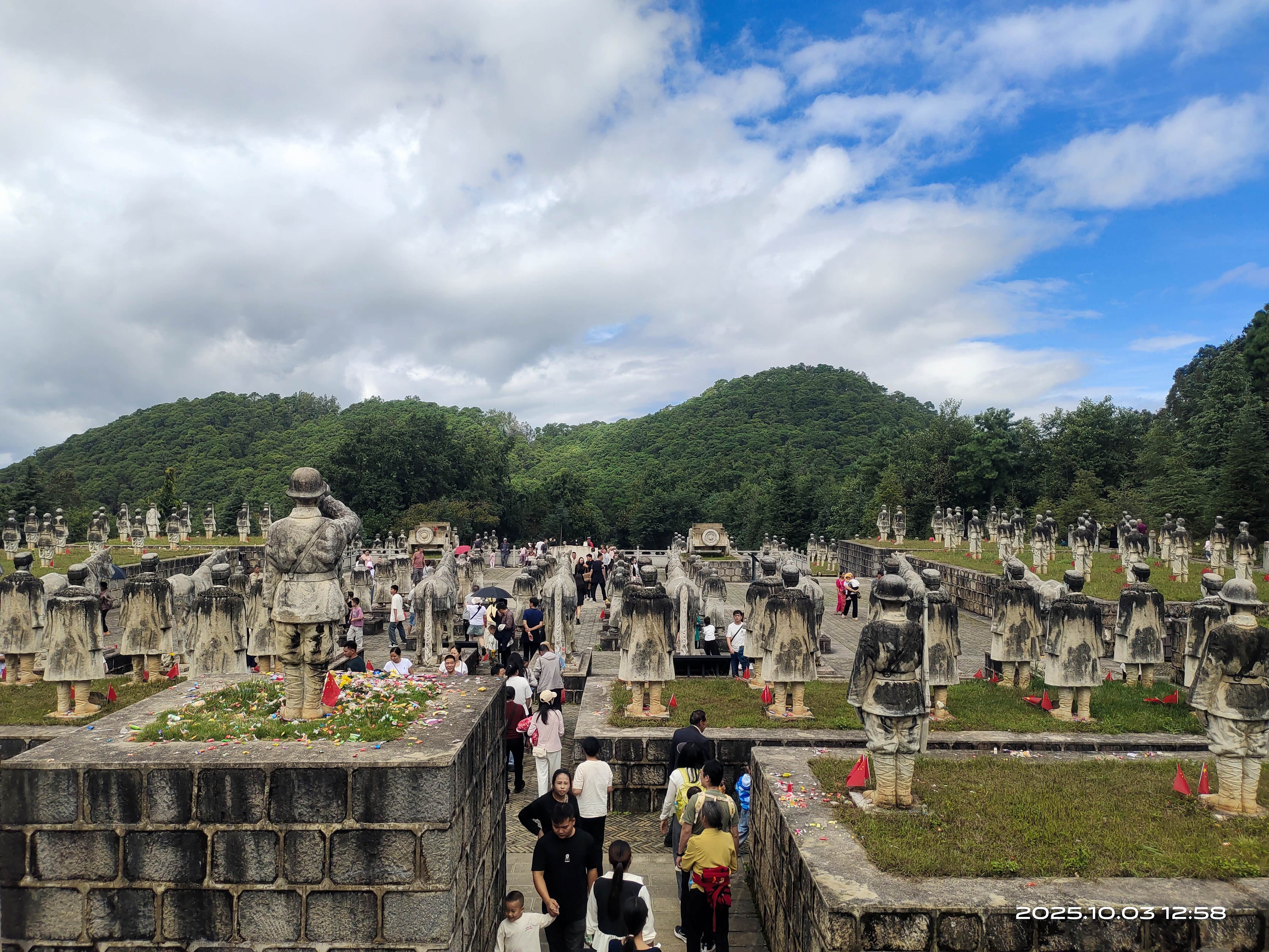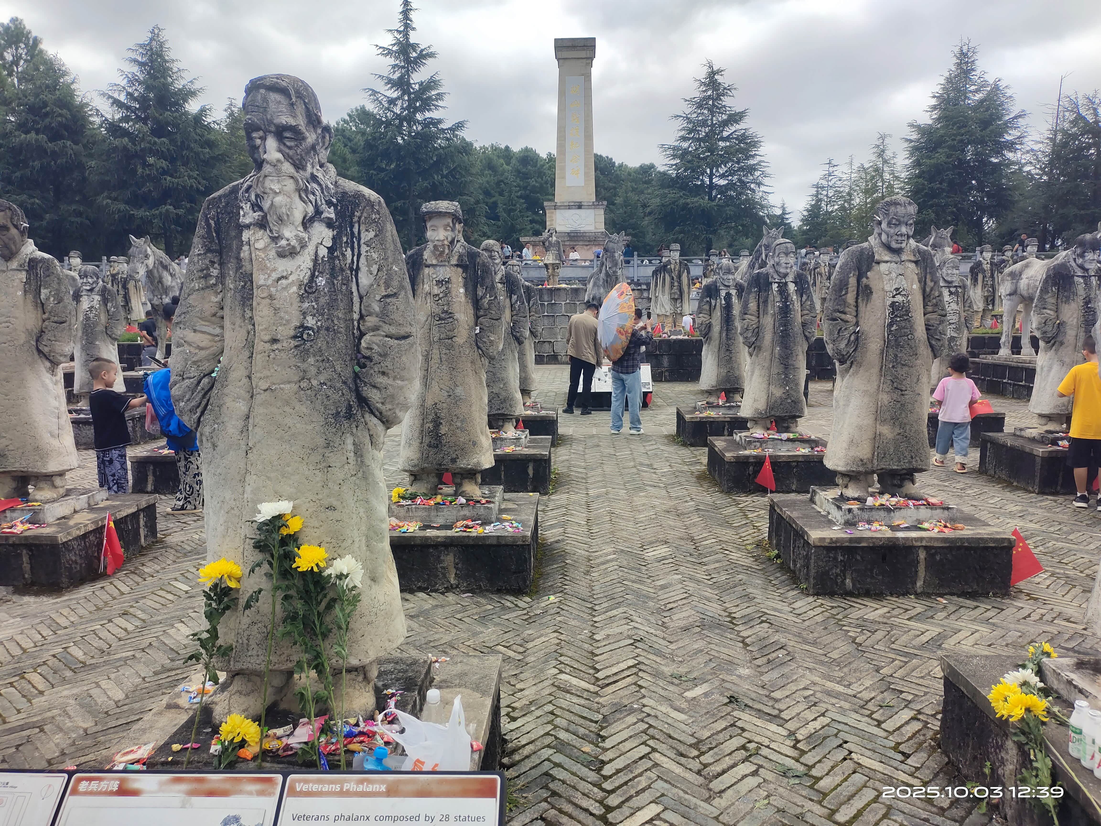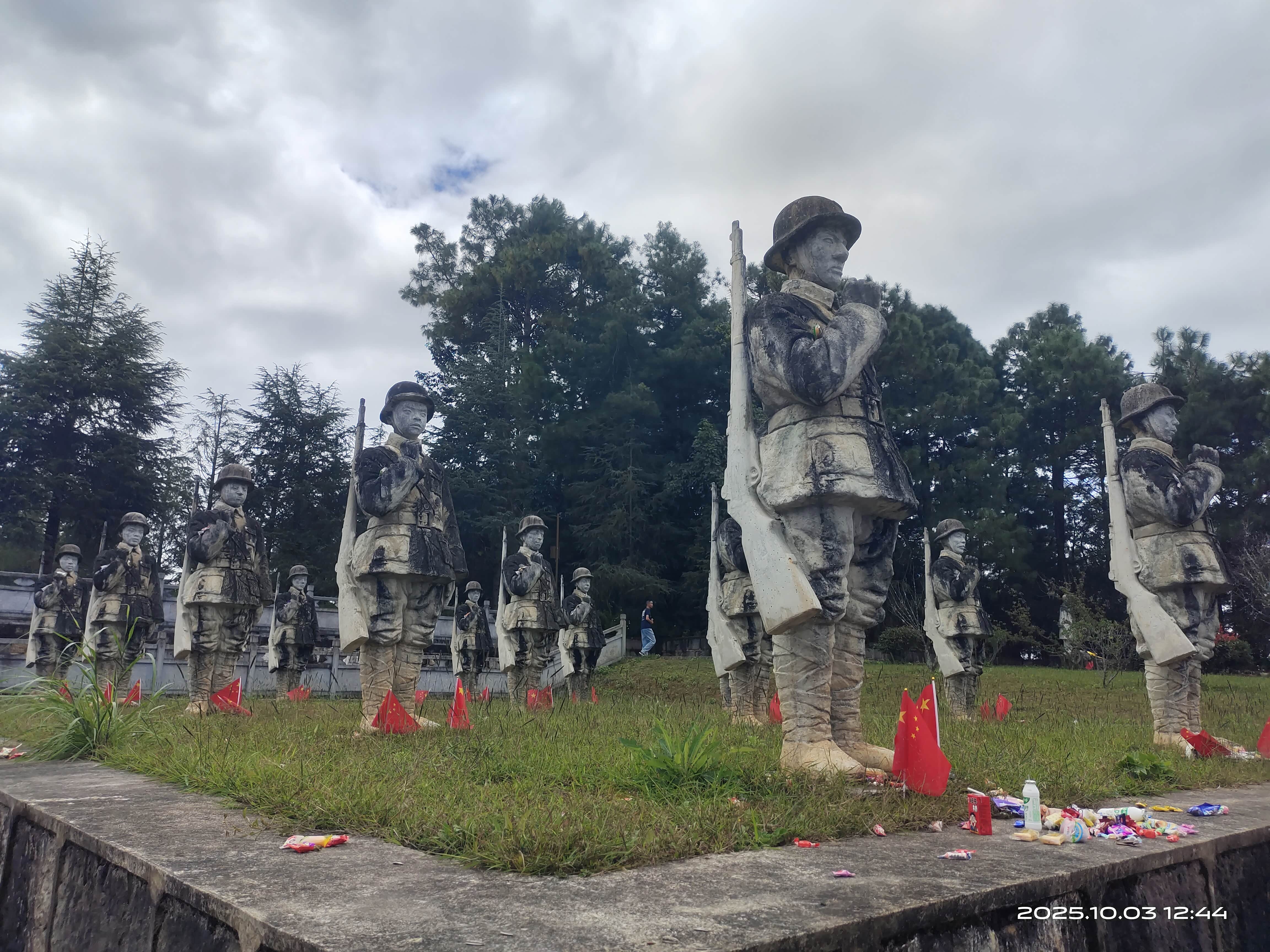 很多人说难怀孩子的人,如果想要孩子可以去娃娃兵方阵里面念叨一下,很可能回去就怀上了,这个准不准不得而知。迷信的角度,确实值得试试。如果能有先辈们的魂魄投胎过来,还真是一件美好的事情呢。我们去之前也想了一下,抗战时候的生活艰苦,娃娃们都没吃过糖,所以去之前特意去超市买了一堆糖果,摆放到娃娃兵雕塑前面,到底能不能吃到另说,心意表达一下。此外,松山海拔高一些,十月的天气有些凉了,去的时候备上一件薄外衣。时不时也下雨,所以雨伞也得准备一把。