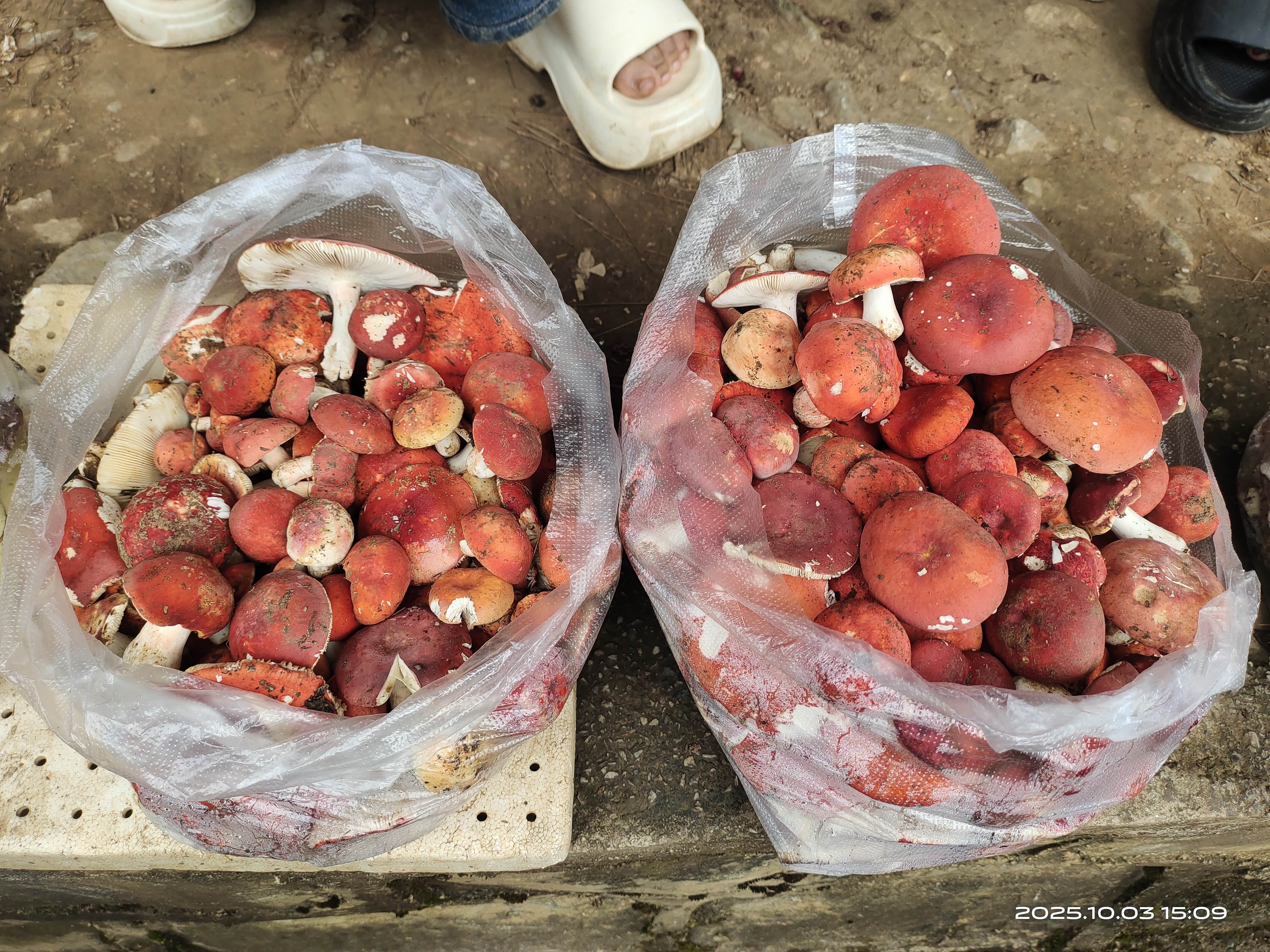在回程三四公里的路边有山里人在路边卖特产,其中大红菌才25元一斤。云南人应该都知道,这个菌子煮鸡的美味!25元应该是非常非常便宜的价格,而且都是小骨朵!我们老家是卖40元一斤呢。不过这个菌子不能摆放太久,如果还要继续游玩去其他地方的就不要买了。直接回家的,值得考虑带回去!