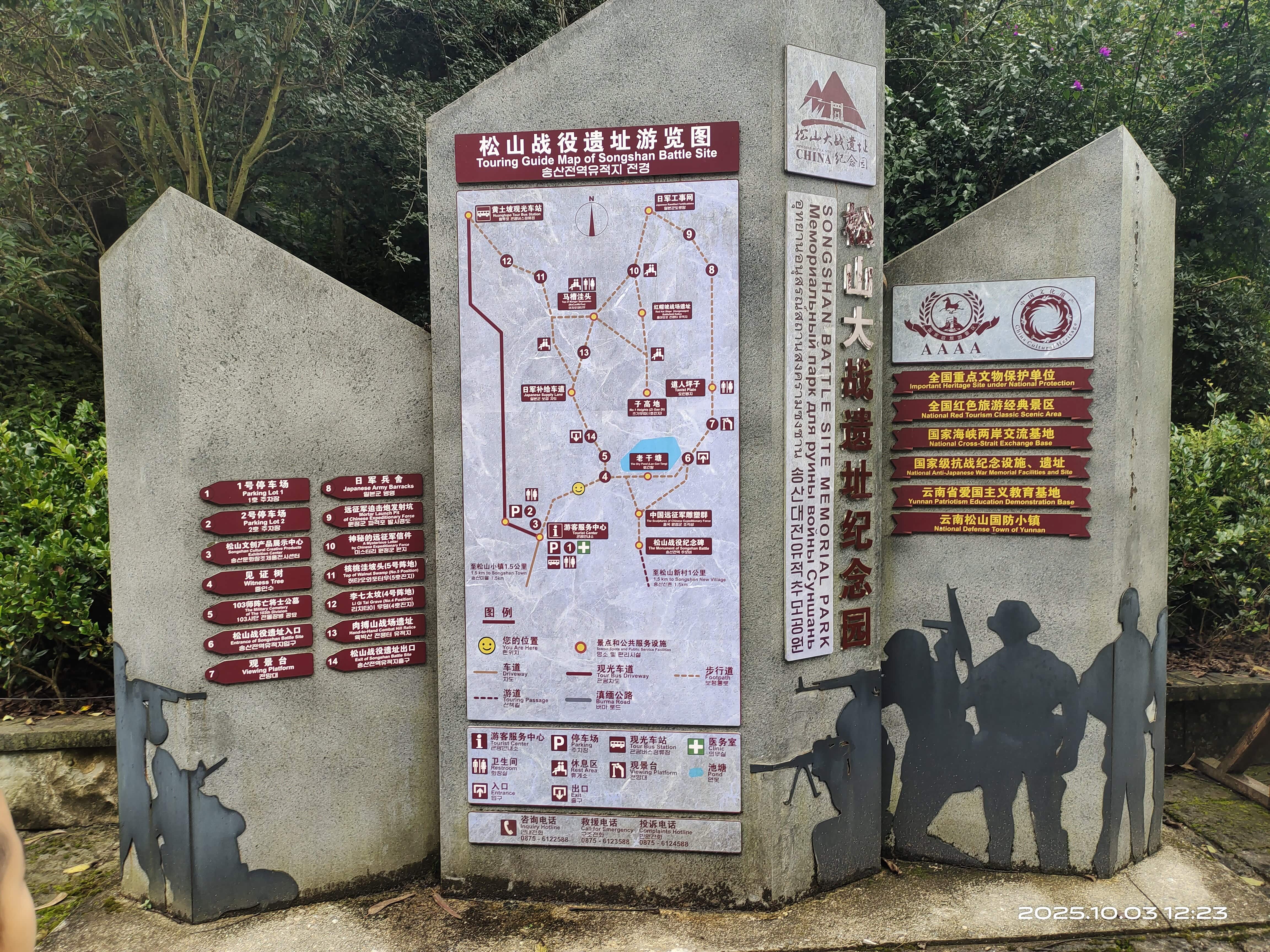 松山战役,之所以这样叫,是因为这个战场整座山都是松树。整个抗战遗址有好几个景点,但是很多景点随着时间流逝,战斗痕迹越来越不清晰了,很多景点需要专业的导游讲解才能知道一些历史故事。整个景区,最震感人的就是远征军雕塑群。我带小孩看,主要也就是给孩子直观的看看这些历史人物。