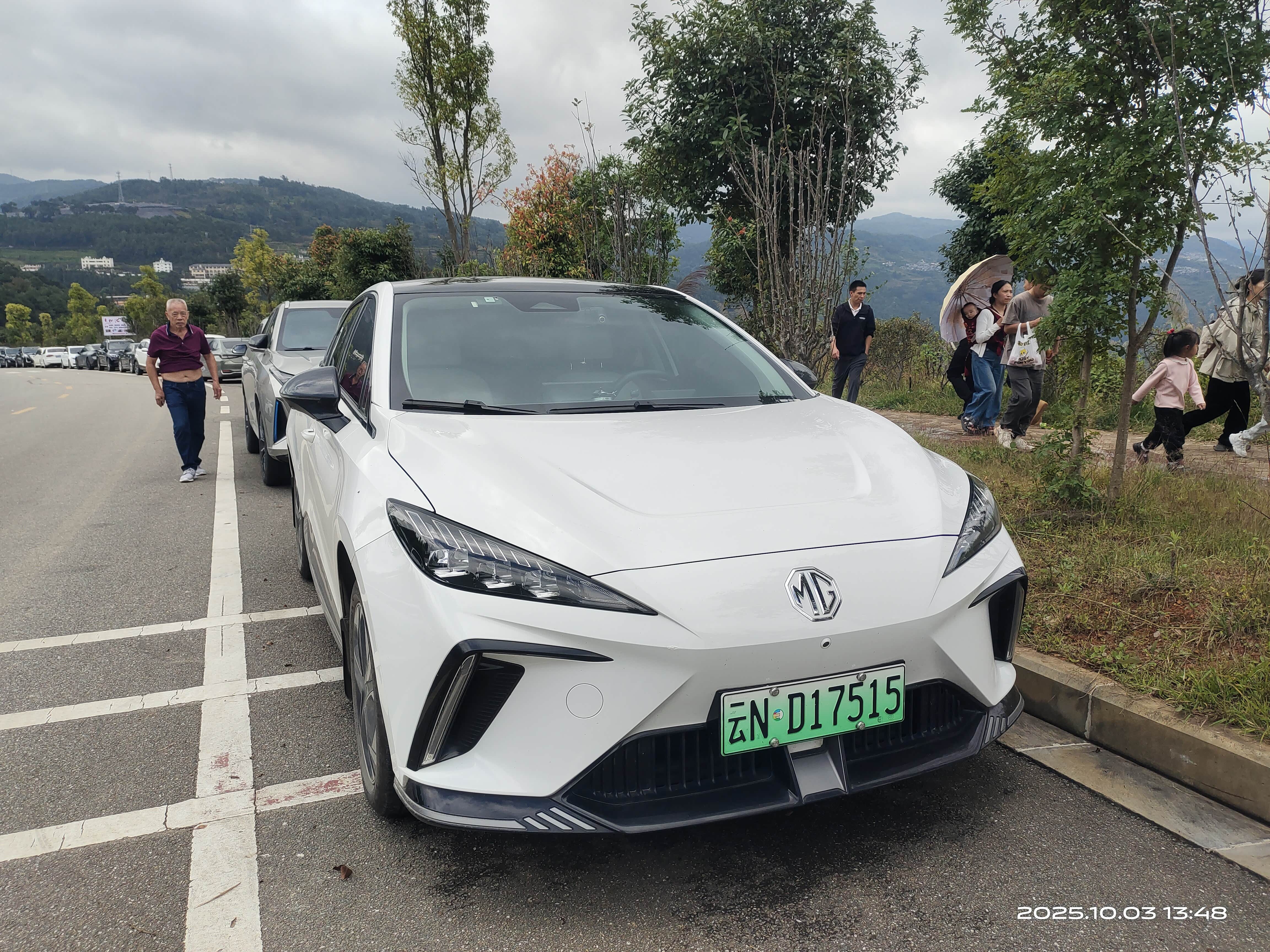 因为提前计算了一下,来回路程加起来也就是不到400公里,所以我就开了电车MG4EV去,这个车动力充足,驾驶操控也很好,我特别喜欢开。车辆是520公里续航的,就算打折了,还是可以开400公里的。所以只要出发前充满电,一直到形成结束也不需要补电。不需要担心国庆高速难充电的问题。去的时候,上坡路比较多,平均电耗差不多17度,回来的时候,电耗就非常低了,前70公里百公里平均电耗才5.9度。