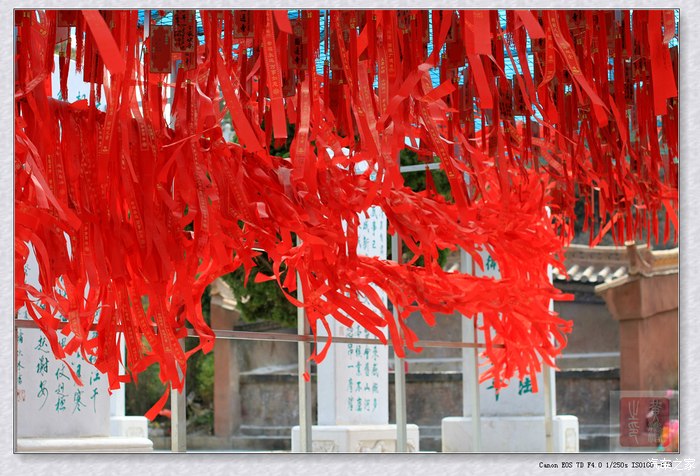 喜欢这种色彩明艳,飘扬在碑林阳光里的祈福,那种肃穆中灵动的拂尘,在静寂的寺院袅袅香雾中和着经音轻轻摆动,让人忍不住在心里也会燃起一坛浸蓝的紫幕,安详、梦想、期待而从容:) ---------摄于云南曲靖圆通寺