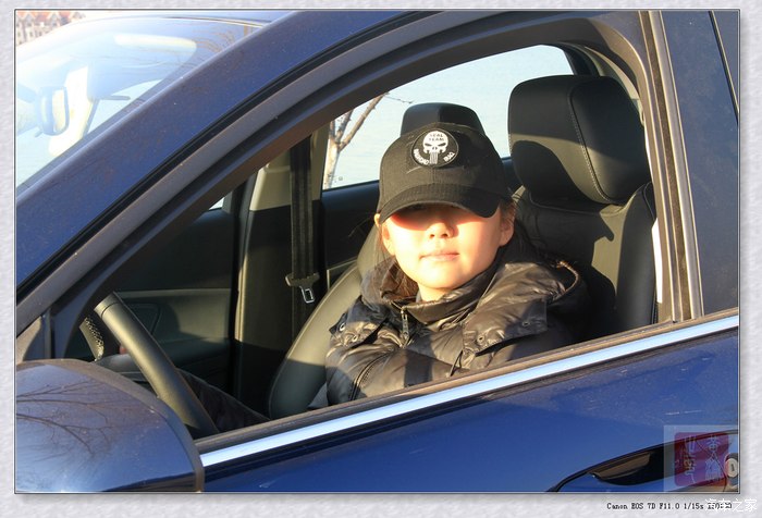 宝贝今天和我一样戴了惩罚者棒球帽,十岁了也是很喜欢车,看看她坐在驾驶位上的神态,还蛮酷噢