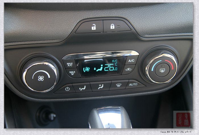 哈哈我们来看看福睿斯的单温自动空调,虽然整体看起来比较单薄,但是使用起来却是非常方便,调好自己需要的温度后,空调会自动将室温控制在设定值左右,我试了试,制冷制热都很迅速,喜欢!!还有一个亮点就是这些小镀亮条,让我觉得陡然间变得亲切起来,简约而不简单哦;)