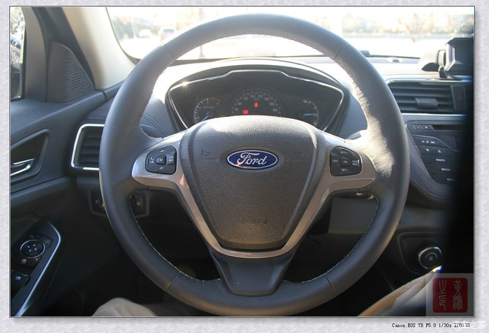 三幅式方向盘包裹皮质,我个人感觉握感尚好,就是略细了一些哈哈,可能我手太大了吧;))左侧按钮是控制音响等多媒体的,右键是控制定速巡航的,比较方便,这在10多万的6速手自一体紧凑车型里很难得的哦,设计水准不错,我很喜欢;)