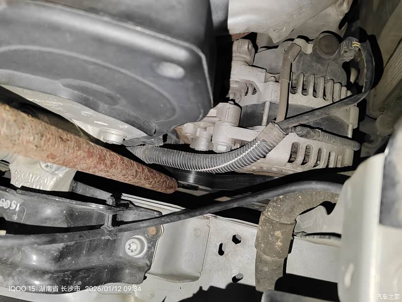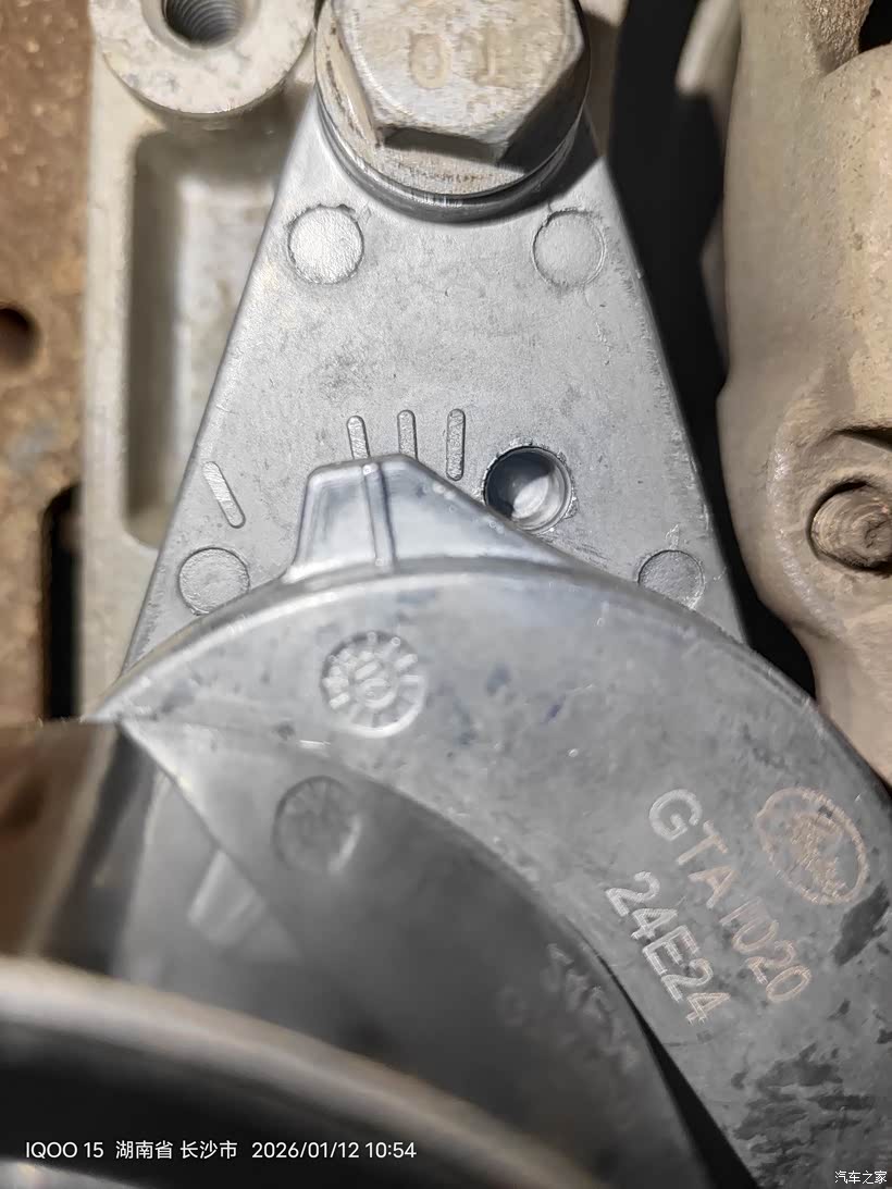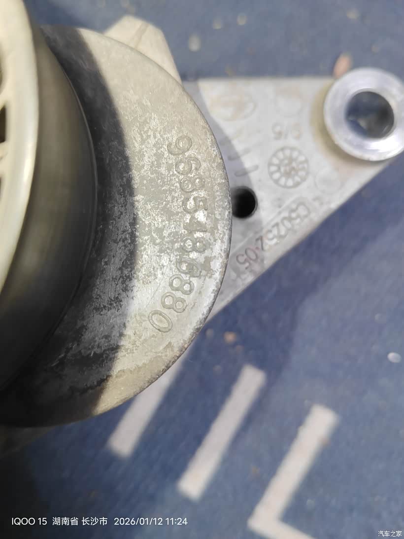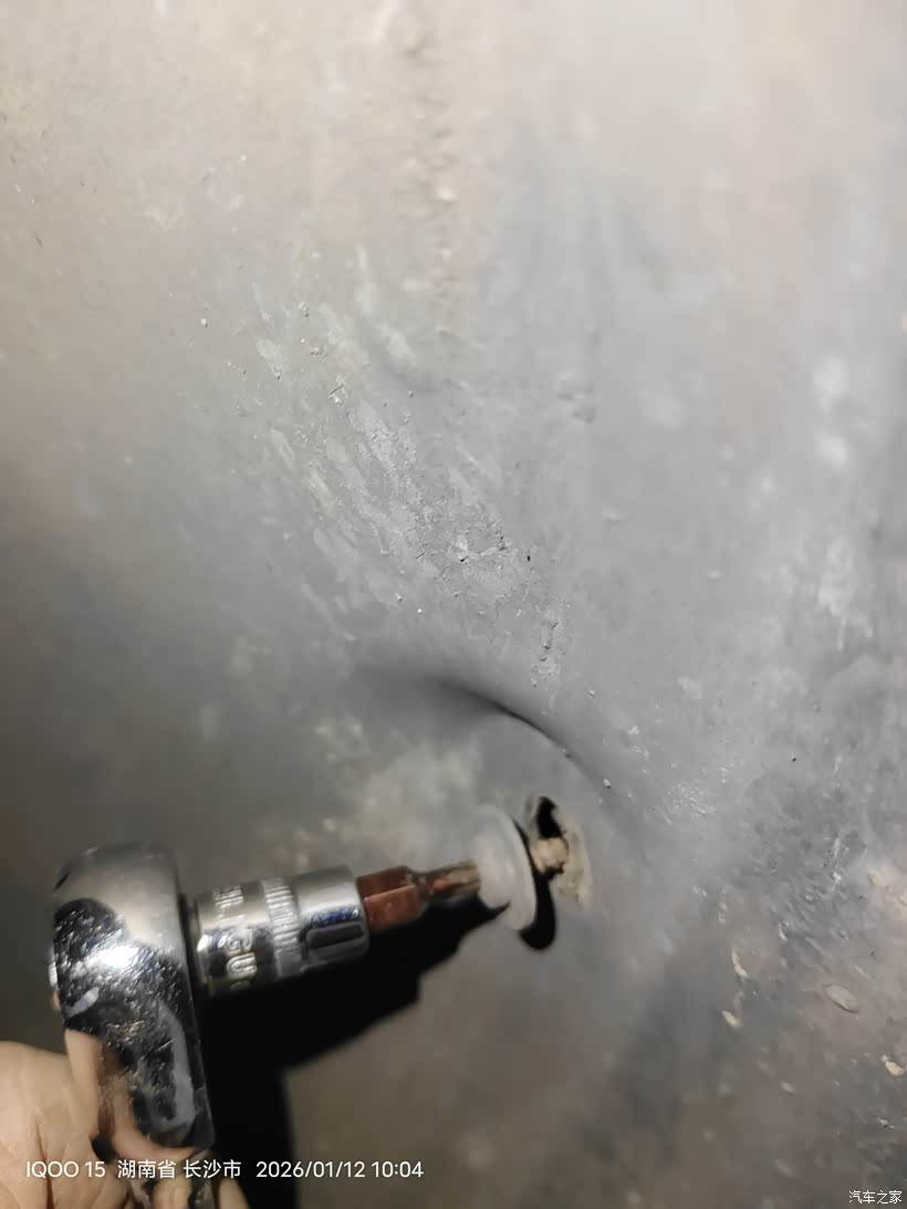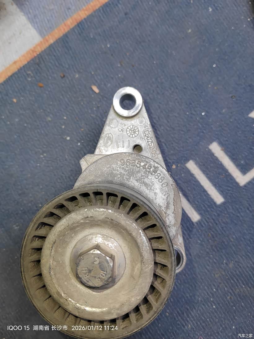 用上加力杆后还是不能插上涨紧轮限位销子,皮带已经被我拿掉了,涨紧轮已经回弹到底,挡住内六角螺丝。所以只能从下面拆了