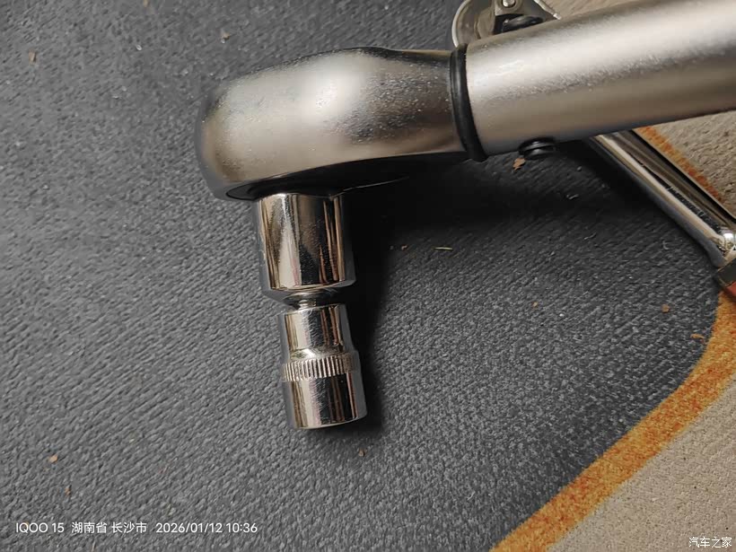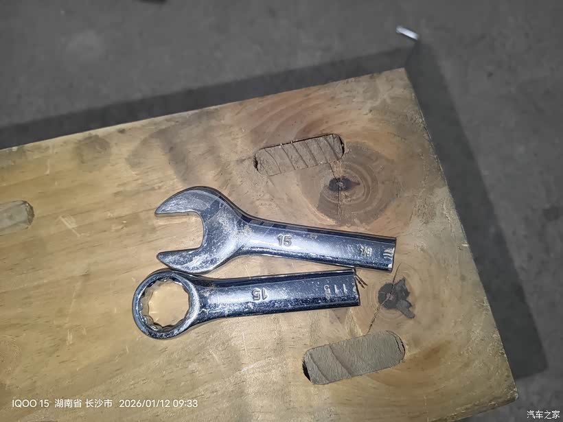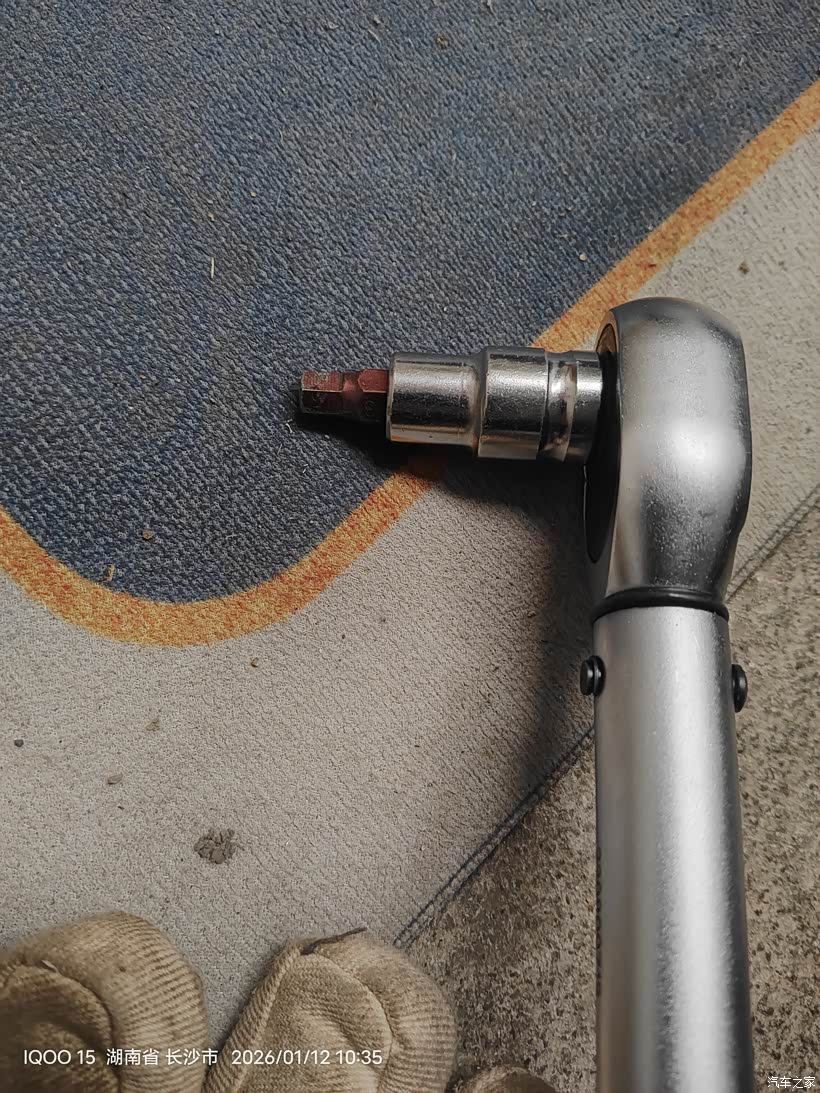 想单手从上面把涨紧轮插上销子,无奈空间太小不好发力,所以把扳手切了用加力杆拆皮带。