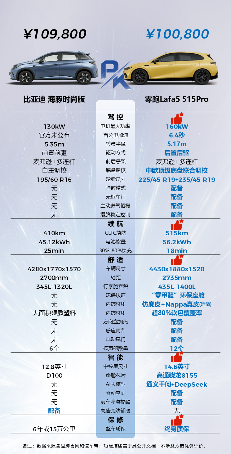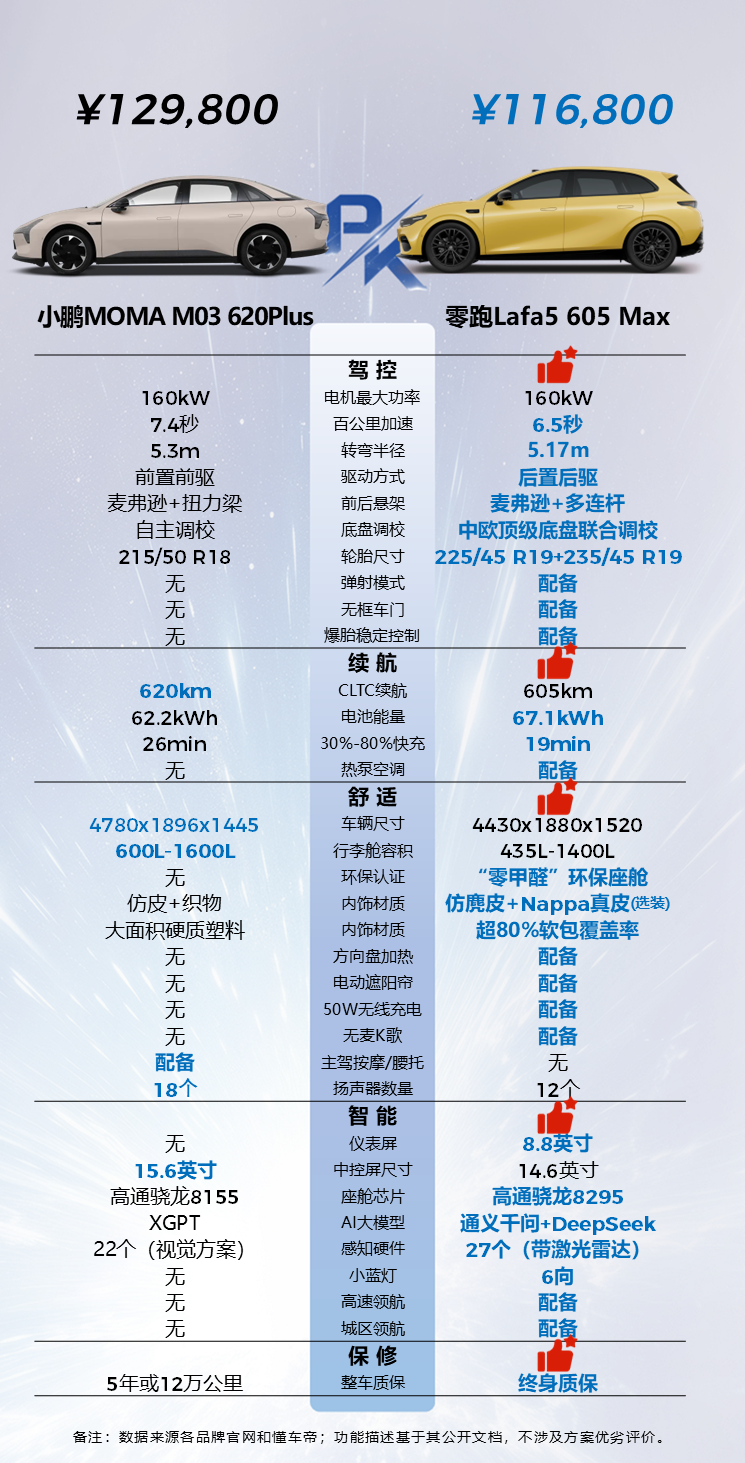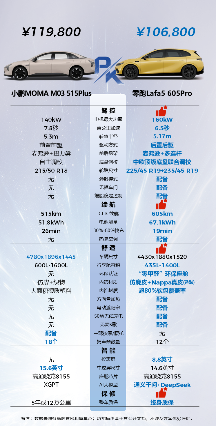 Lafa5的“运动轿跑”定位也引发讨论。有网友指出,Lafa5与零跑B01轿车轴距相同,均为2735mm,且动力系统配置相似,但Lafa5的电池电芯供应商从B01的宁德时代变更为国轩高科,这被部分消费者视为“降级”。