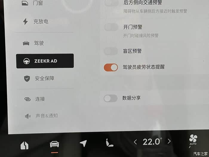 还有一项非常实用的功能就是“驾驶员状态检测”,通过方向盘上的摄像头检测到驾驶员处于疲劳状态时,就会发出提示音和开启大风量吹向驾驶员,达到一个提神的作用。我曾经在高速上驾驶时被这个功能提醒过几次,真心好评。