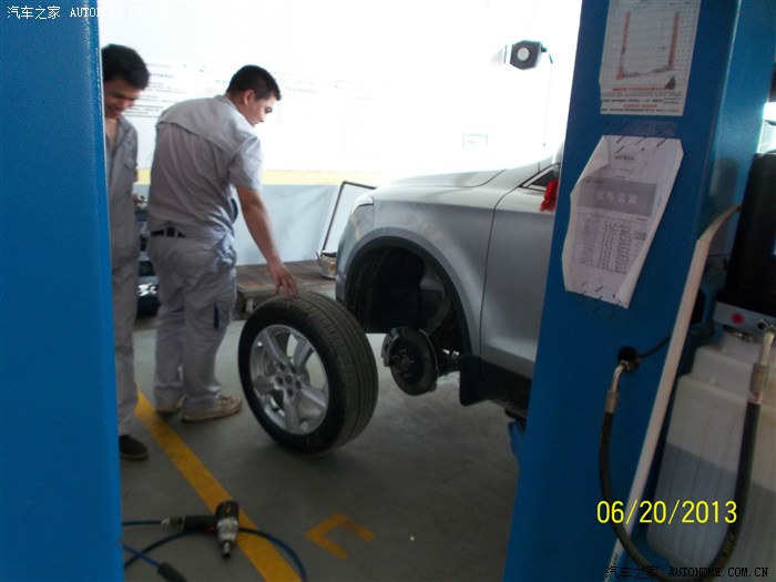这是六月20号当天,提车一个星期后4S通知去做底盘装甲和贴膜时照的。看这张。。。。叉80被高高叉起了