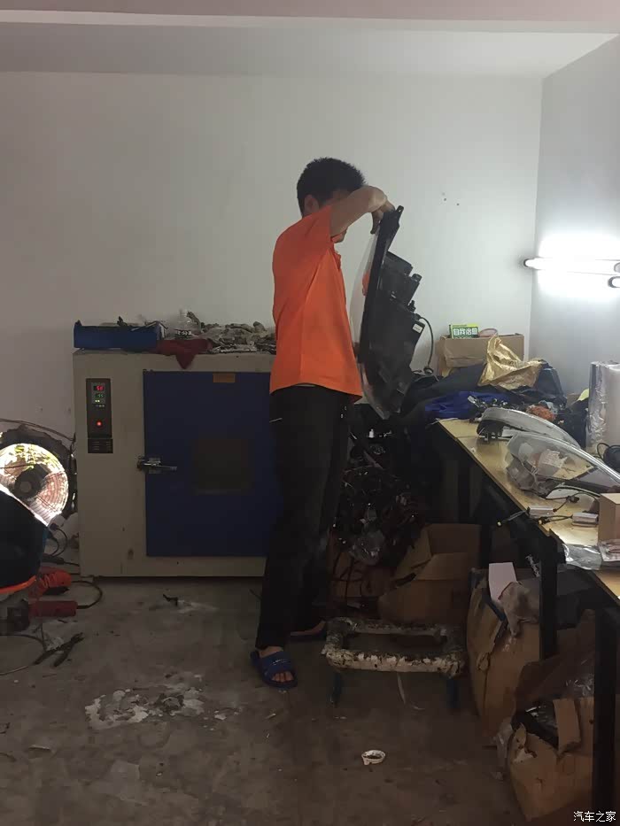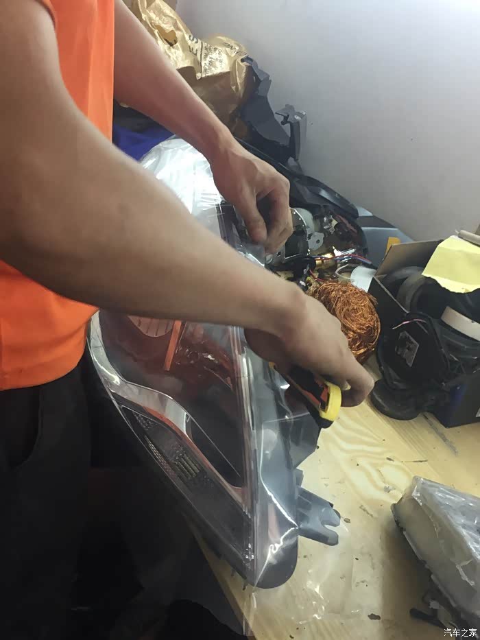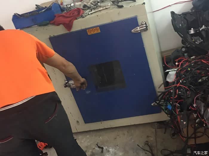经过差不多半小时的等待、烤箱里的灯可以出炉了……师傅开始进行大灯总成拆解