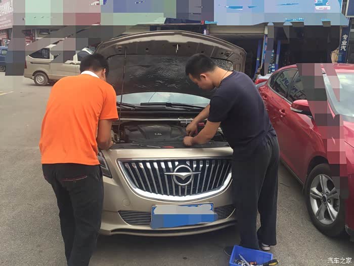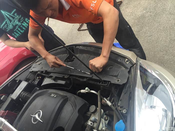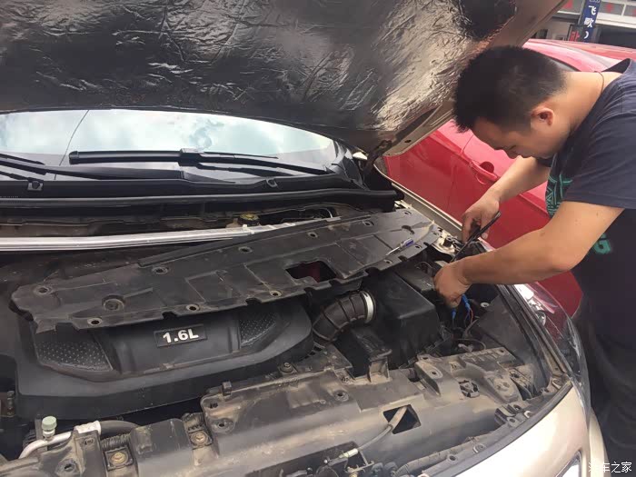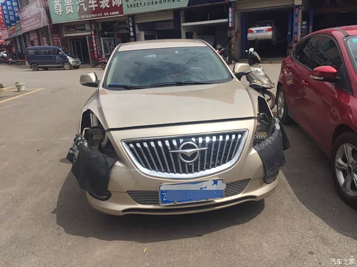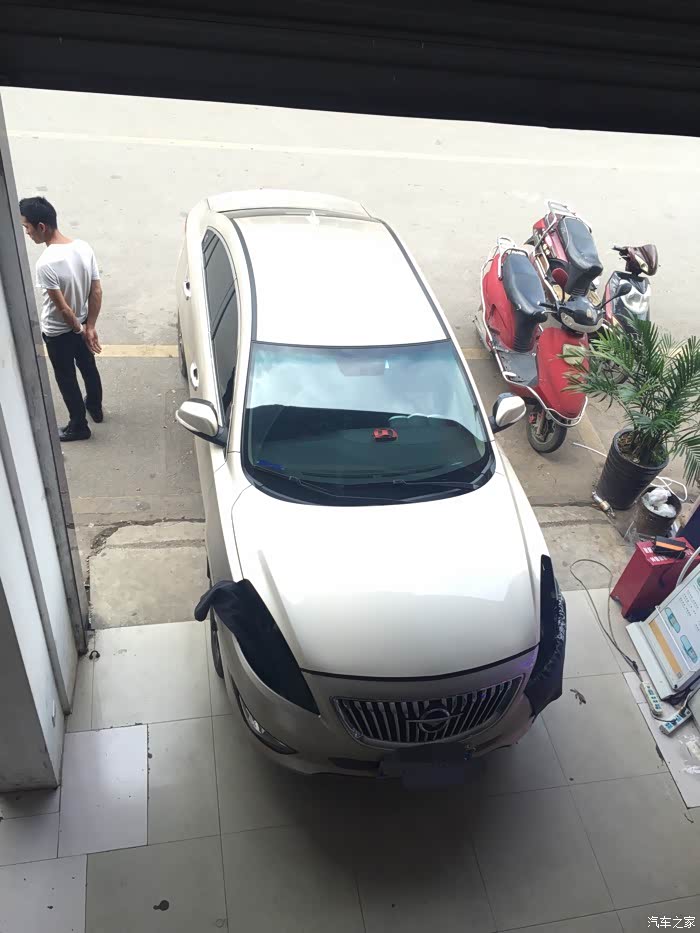 为了避免车身被刮花、师傅搞了个垫子挡在大灯下面、这个值得点赞