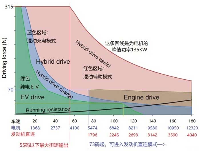 还有,那些对增程式有敌意的朋友,请认真去学习增程式原理。天天咬着增程式违反能量守恒定律,有两次能量损失,能效一定低于直驱的人,一定是不了解增程式的人!在他们看来,增程式是发动机带动发电机发电,电充入电池(有一次能量损失),再由电池放出来(再次能量损失)驱动电机。这个认知是基本错误的。殊不知,同时充放电的电池,目前全世界都没有!实际上,增程式发的电,是直接用于驱动电机的,电池只起到一个蓄水池调节作用。发动机是被人为地设置在最佳热效率转速区间,安心发电。发的电多时(与驱动电机的用电量相比),多出的电才存入电池。发的电少时,不足的电又由电池的电来补充!