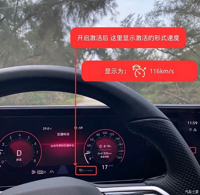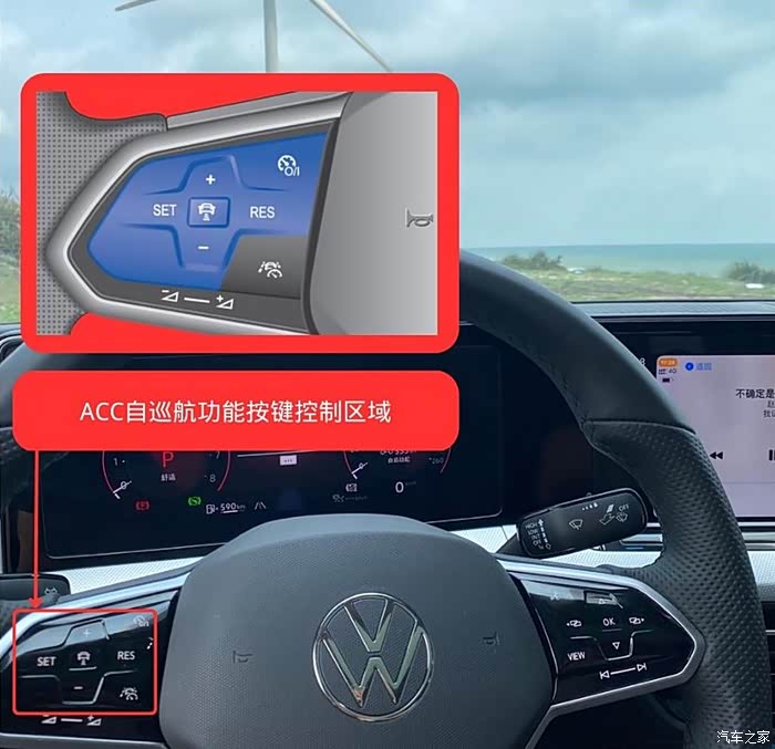 1.自适应巡航的激活:行驶速度激活的另外一种方法就是通过方向盘的左侧功能按键上按+ -功能键实现,这个功能就是我不会去使用的,因为对按键位置的不熟悉,要去按压的话需要时间寻找及调整,视线的离开可能时间较长,大大增加了交通事故发生的概率。