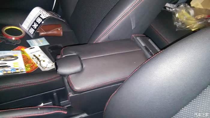 【前中央扶手】看到论坛也有不少车友问扶手箱,我就顺便写一写,我买扶手箱时,也看了很多种,价格从几十元到二三百,都考察过,最后定了这么一款。空间够大,也够好用,安装也稳固。缺点是拉手刹时稍微有点别扭,适应了就好了。这种是两侧双开门式的。前面突出是开关,向上一提就能开门,就是这个开关有点挡手,不过问题不大,很快就能适应。 后安装的扶手一般有两种,一种是箱体和插槽是一体的,一种是分离的,一般分离的插槽是木质的,用钉固定在箱体上,前者结实,但是空间小,也就两瓶可乐的空间。后者高档一些,空间也大,但是如果质量不过关插槽容易掉下来。如果你选这种分体的,就不要用固定垫片了,因为插槽固定牢固了,用大力晃动箱体有可能会掰开箱体插槽的链接处(例如我们家小孩经常从这里爬前爬后的),留点晃动余地不容易损坏,但是不用大力是感觉不到晃动的。我选了好久才找到这么一款扶手箱,用着很不错,也是分体木质的。