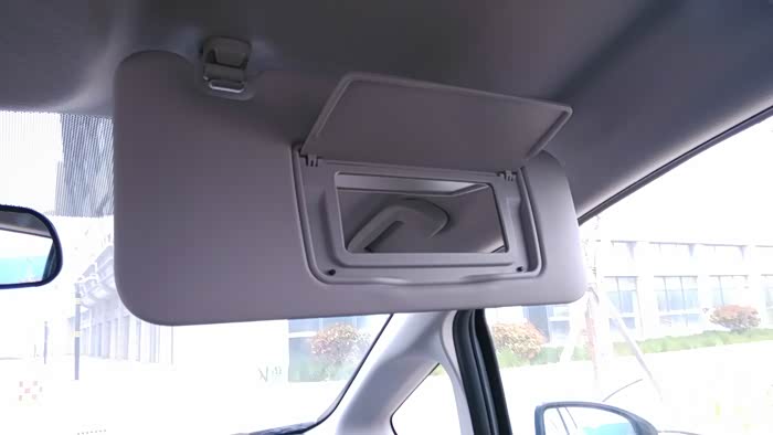 【内饰】内饰就比较可怜了,因为成本原因,这车的成本基本用在三大件上,内饰比起来就简陋很多,虽然很多面板都用了玻璃材质,但也很沾灰的,塑料经过类皮的处理,摸起来有点颗粒感,但还是很硬。中控部分略向驾驶侧倾斜,方便操作。其他地方细节做的不够,驾驶遮阳板没有镜子,而副驾有镜子没灯。可能是驾驶员用车内后视镜,副驾驶安排了遮阳板后视镜。车内顶灯在车顶中间位置,这个布置照顾到了后排乘客的用灯要求,又不会因为亮灯影响驾驶视线,很好的设计。