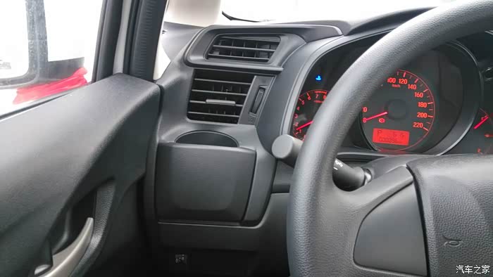 【操控】开惯了三厢车,这两厢小型车开起来非常灵活,底盘很紧凑,后扭力梁的悬挂偏硬,这应该是和较高的车身相配,车身高重心高悬挂必然会硬,不然车行走起来晃动严重。前悬挂软硬适中,过减速带能明显感觉出前后的不同。方向盘电动助力,非常轻,但是地面的回馈感很小。方向盘有些许虚位,也不尽然全是虚位,因为虚位是方向盘转动时轮胎无有效转动才是虚位,而飞度的虚位不是很明显,只是你轻微打方向的初段,轮胎也跟着转动,只是转动幅度非常小,打满方向仍然时一圈半。与5-6万元的奇瑞E5比起来方向精准性还是差一些。