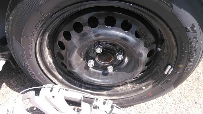 【安装后轮内衬】飞度后轮没有内衬,底盘的贴叶子都露在外面,看着非常简陋,就像一位翩翩仙子光着脚丫子穿着拖鞋一样。网购了一套后轮内衬,抽了时间安装了上去。顺便在这里给很多网友脑补一下怎么更换轮胎。很多人虽然感觉自己很懂车,但实际上连备胎都没换过。在汽车理论上满腹经纶,却没有一点实际动手能力(或许最大的动手能力是敲键盘),我尽量用简单语言让大家看明白。首先,每辆车都有备胎,也有一些随车工具,工具送的都不一样,但有一样是都会配送的,那就是千斤顶。一般都配送这种螺轴的,不仅是因为成本低,也因为重量轻,体积小,故障率低的优点。这东西(还有备胎)一辈子都不一定用上一次,就不必纠结了(论坛有不少人纠结备胎的,全尺寸备胎就喊好,非全尺寸的就打死也不买,看着都觉得可笑)。拆卸轮胎时,一定要找平坦、坚硬的地面,如果地面是土地,就垫个结实点的方砖。车辆拉手刹,手动档挂1档,自动挂P。千斤顶放好位置,对准底盘的横梁(不同车型的梁位置不一样,低头进车底都能看见),用送的钩子勾住螺轴开始转动,等千斤顶开始接触车梁,吃上劲了,就停下,这时轮胎没有离地,地面还有摩擦力,又有千斤顶吃着劲,不会对轮胎固定螺丝产生应力,所以这时拆卸螺丝最合适。用送的扳手依次松开四个螺丝,不用松到底,用手能拧动就可以,再继续转千斤顶,使轮胎完全离地,拧下螺丝拿下轮胎,这时就拆卸完毕了。记住,安装内衬时,轮胎要放在后门下车底,以防在安装时出现意外,车辆落下直接触地造成人身或车辆损失。按照内衬的位置依次用卡子固定在后轮廓内,如果不服帖可以用剪刀修改,直到完全服帖地安在轮廓内。卡子不行就直接上螺丝,有两个孔没有卡子,实在没办法了,用小木条,做了两个木楔子,自攻丝伺候,妥妥的。安装好后,开始安装轮胎,轮胎四个螺丝先用手拧到底,左右晃动一下轮胎,推轮胎到底。用手拧紧,再用扳手拧,注意一定对角拧,不要拧死,稍微用力就停止。然后放千斤顶,等轮胎开始吃劲的时候赶紧停下,用扳手拧螺丝,对角拧,拧到底,再放千斤顶,放的过程你会听见吱吱嘎嘎的想,不用管他,放到底再用扳手紧固一下,看看有没有松动,紧固到底就行了。到此安装完毕。