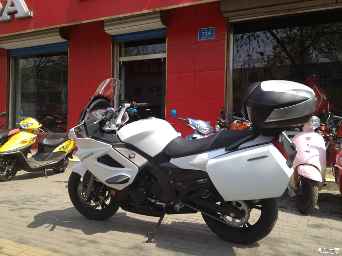 旁边一辆加了边箱的二手欧版黄龙,骑了几百米,提速没有NK狠,低转时声音不错,高转有些散。超车时忘了箱子,差点给人刮了。只差1公分,汗!