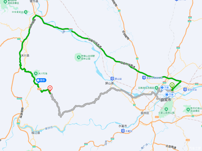 凌晨三点的宜宾临港,被浓稠的夜色包裹着,街道上只有路灯散发着照明亮光,连平日里喧嚣的路口也变得静谧无声。我简单洗漱后拎起早已收拾好的摄影包,里面装着相机、三脚架和备用相机,满心都是对日出云海的憧憬。下楼启动车辆,仪表盘的蓝光映亮车厢,导航定位 “八仙山游客中心停车场”,一场说走就走的自驾拍摄之旅正式启程。
