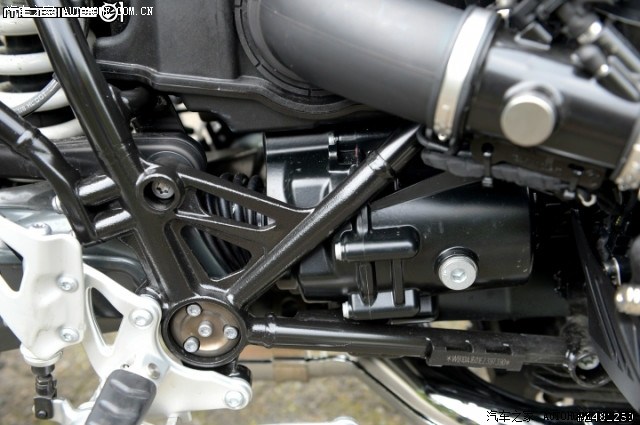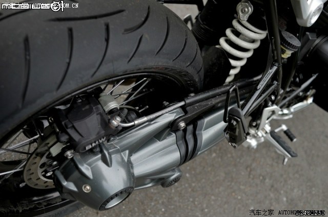 轴传动的设计是一直以来R系列的经典,而这个设计也持续至今,在R nineT上BMW持续使用这项设计,最主要是轴传动能够更直接传递动力的输出,同时传动轴也兼任著后摇臂,联结著后轮。