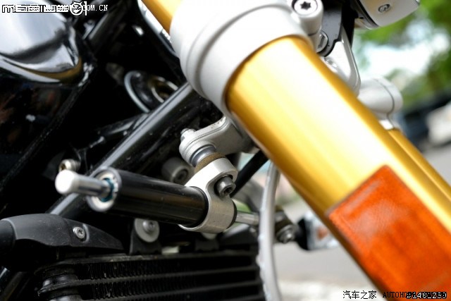 原厂也配有基本的防甩头供车主使用,不过由于外观的精简化,将防甩头设计在三角台下方提供车辆在高速下的稳定度,看来R nineT的跑车性格越来越彰显了。
