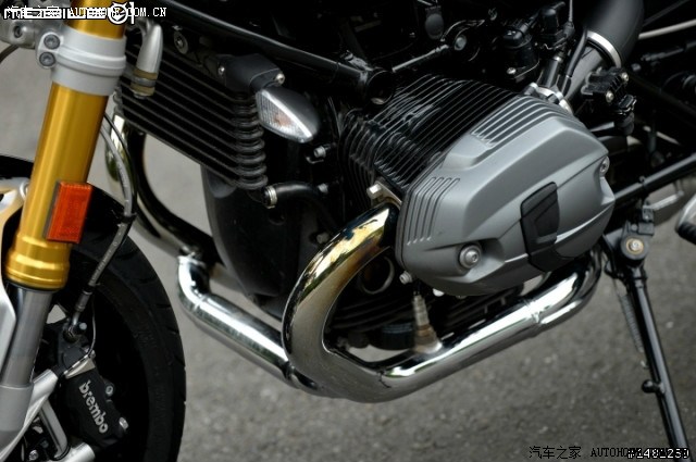 由于水平对卧双缸的设计,让引擎在运转时获得更优异的平衡性,而运转的顺畅度与也相对提升许多,引擎整体重心也得以设计在更低的位置,换取车辆整体重心下降而得到更佳的操控性。从1923年就采用的对卧式双缸引擎,经过了长达90年的开发与改良,至今已经是一个相当成熟的引擎个体,排气量达1,170c.c,缸径 X 冲程:101mm X 73mm,虽然与R1200GS相比较,并未采用水冷式的引擎系统,不过在考量外形与成本设计,R nineT选择了油冷的散热设计,对于车辆引擎的散热一样颇有成效。也让峰值马力达到110HP/7,500rpm,而峰值扭力输出为119Nm/6,000rpm,与R1200GS相较可是不遑多让。