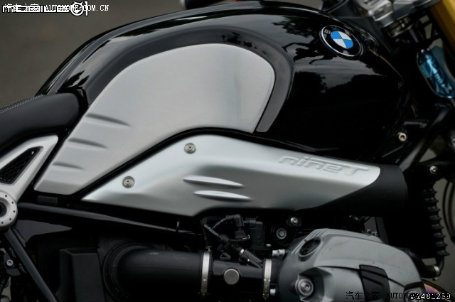 在油箱下方的是笔者认为最有特色的进气口设计,包含了“nineT”的金属压印字体,利用这个进气口达到引擎内部的散热效果的提升。