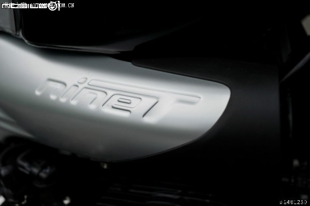 R nineT 车身Logo,在油箱下方的金属进气口上用金属打印的方式,设计成凹陷字体的“nineT”字样,撇去了目前各家车款常用的水贴烤漆等技术,保持与车身设计一样的理念,巧妙地运用金属的质感呈现出车辆Logo,展现简约的设计特色。