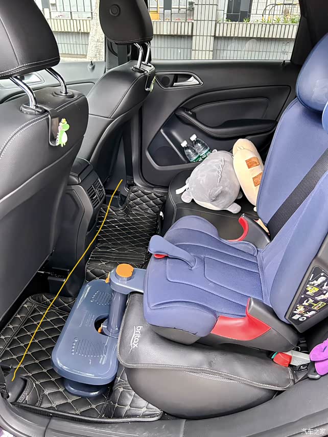 我画了一张示意图,V40的后排空间差不多就是黄线的位置,别说大人放腿,放小孩的脚踏板都显得空间紧凑