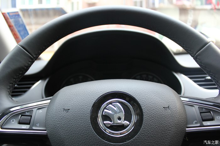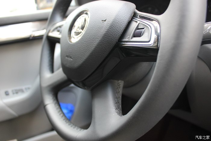 真皮方向盘手感没的说,要是安装套子简直是暴殄天物
