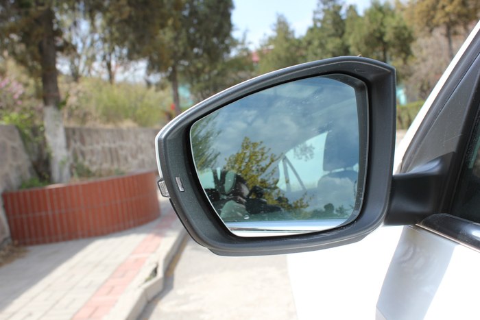 后视镜转向灯亮起状态,大众设计的这个小细节还是挺贴心的,除了看仪表盘之外,还能够看这个来判断