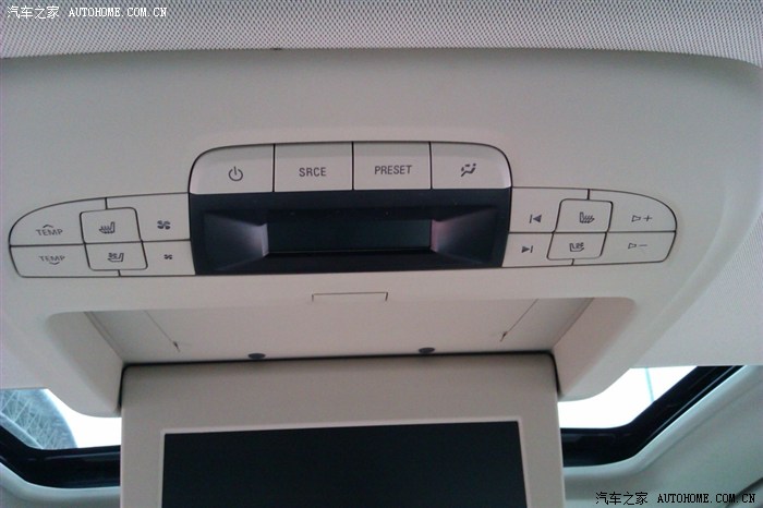 后排影音娱乐系统的控制按键,集成了空调控制、影音控制等等。
