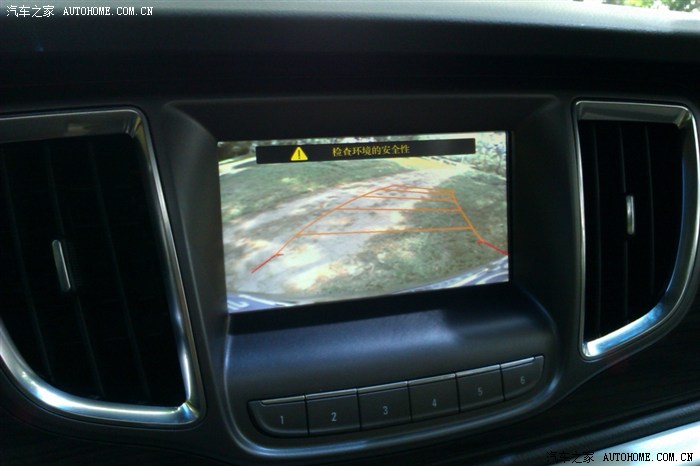 倒车影像系统,这是我开上那个小草坡时拍的,那个地方比较陡,后面都是树,要是没倒车影像系统,我还真是很难倒出来。因为车身比较大和长,平时倒车入库的时候,有倒车影像系统的倒车轨迹线的辅助,变得轻松了很多。