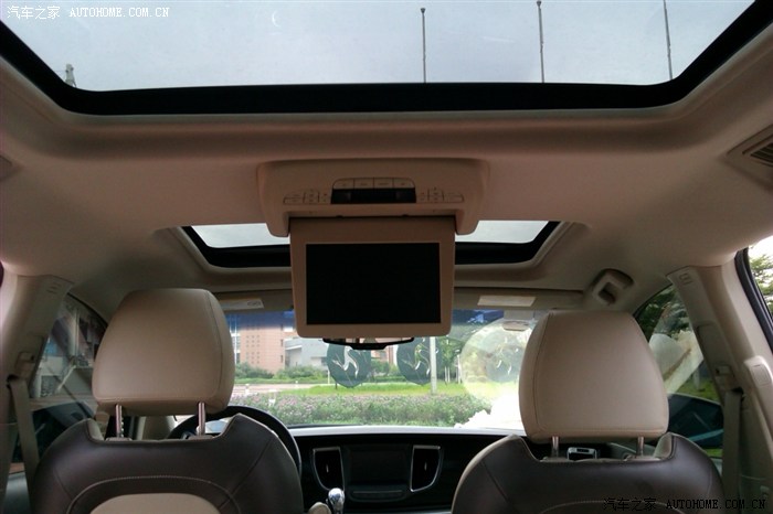 中排往前看的视野,看到上面的全景天窗了么?还有头顶的后排影音娱乐系统,老板必备。再看看座椅的椅背,这是我觉得别克GL8令我不满的一点,为何不是座椅前后颜色一体呢?看起来不够豪华。可能设计师刻意这样设计,以让GL8舱内也适合家用?不过家用也不对啊,看起来偏山寨了。