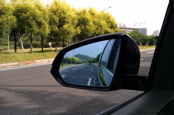 宽大的后视镜,分为两个区域,外侧的曲面镜扩充了视角,并线的时候很有用。
