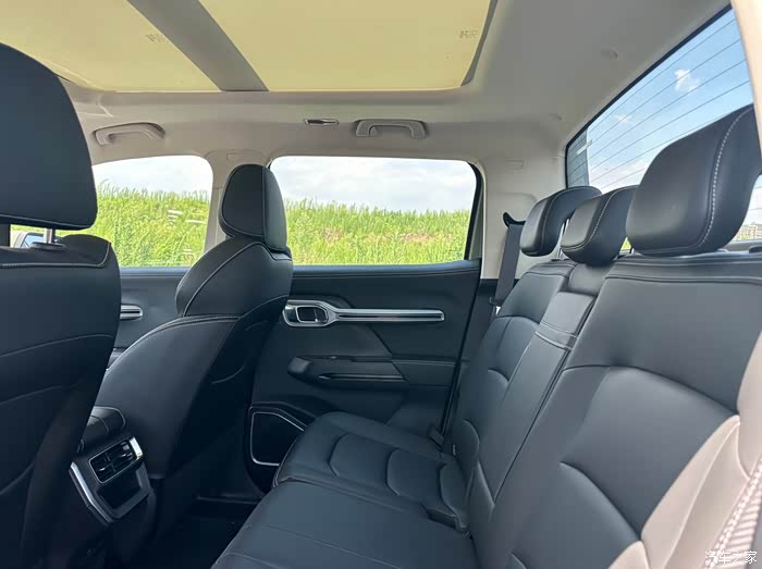 坐在车内不觉得局促压抑,按照我180的身高看,头顶还能放进去一拳多点的富余,腿部也可以活动,哪怕是第二排位置也不会顶到膝盖,可以随意伸展。