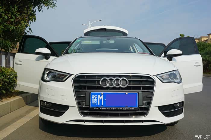 然后去的是奥迪4S店,在那里,一眼就是A3的两厢版本,进去试试看。哇。给我感觉就是,比奔驰的内空大很多。虽然外面看,都很小。但是坐进来感觉还真是不一样,调整好坐姿以后,到后排去,位置还有很多。一点不压抑!虽然没有全景天窗,但是大尺寸天窗也够用。内饰的格局,也很平庸。不如奔驰那么夸张的造型。喜欢这个平淡且不失豪华的内饰。我爸爸也觉得A3比奔驰大很多。于是就决定买个A3了。就没有去看宝马了。。。看论坛,宝马的内饰风格比较老,内饰基本是塑料和布的搭配。于是放弃之(不在意加速快那么几秒。或者有什么好好的操控,这价格区间的,都不会太差。只是看个人喜好问题了)