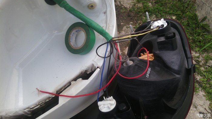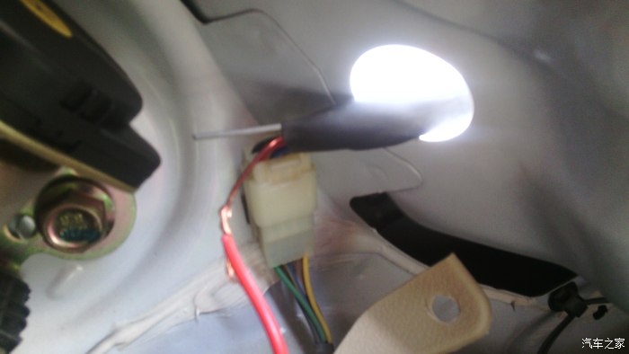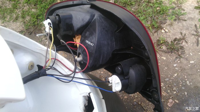 拧开钥匙,挂倒挡,发现红线位置的这个灯亮了,在红线上开口,确定红线是倒车灯线。