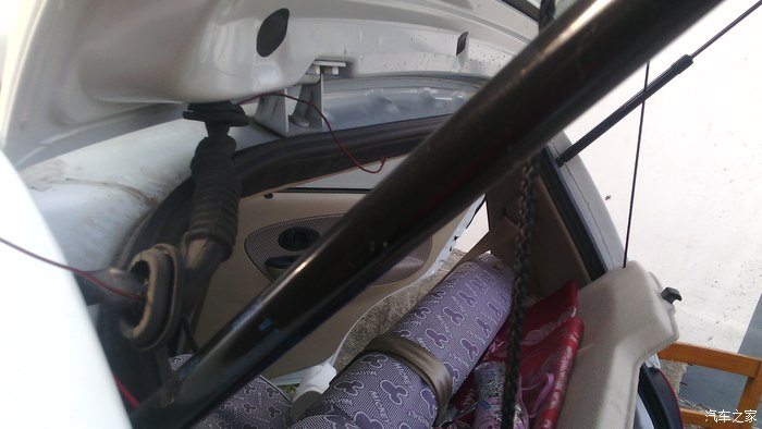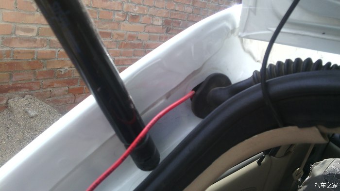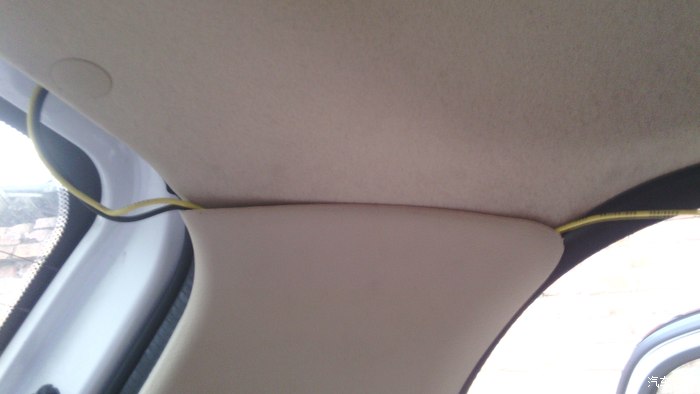 这两线压在了门楣的黑橡胶条下,一直引到前挡风玻璃处雨刮器处向下穿入