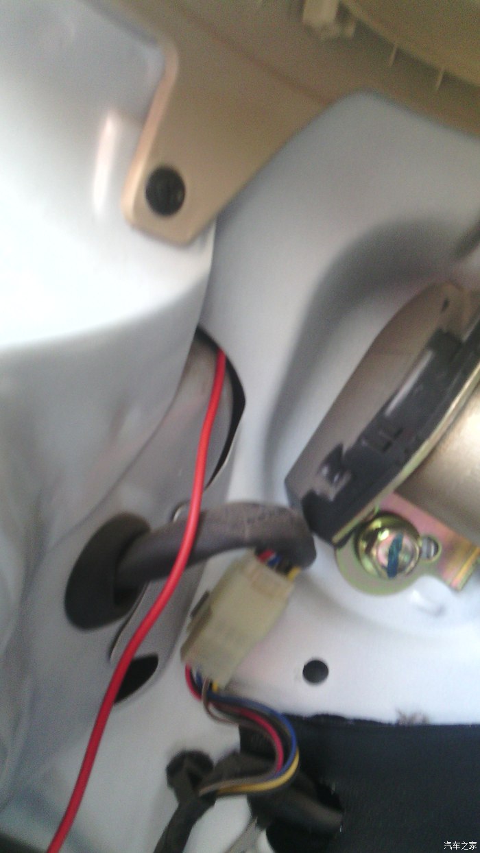 线从A柱内引入离合器上方进中控室。