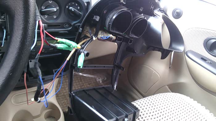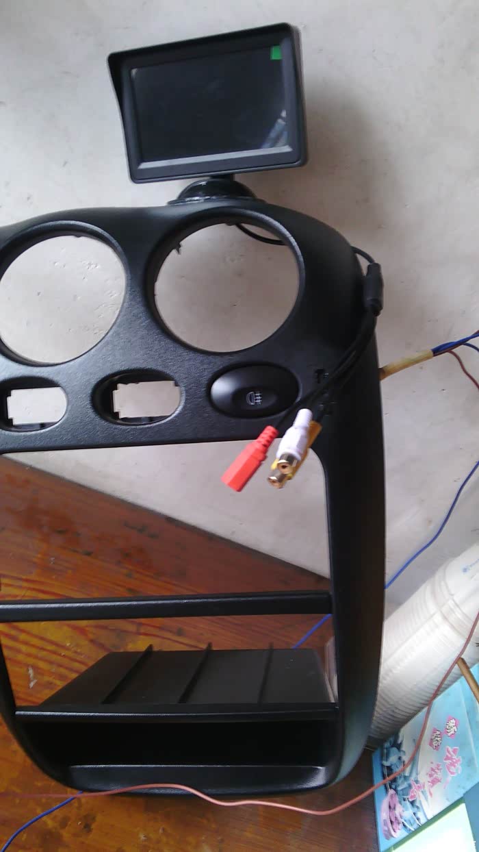 用AB胶把显示器座粘在这里,线从座柱内穿到中控台内。