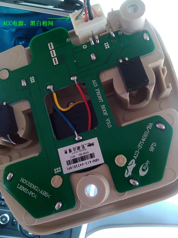 拆开阅读灯,高兴极了,有ACC电源线,我车是2015风云2新锐版的,出厂日期是2016年4月